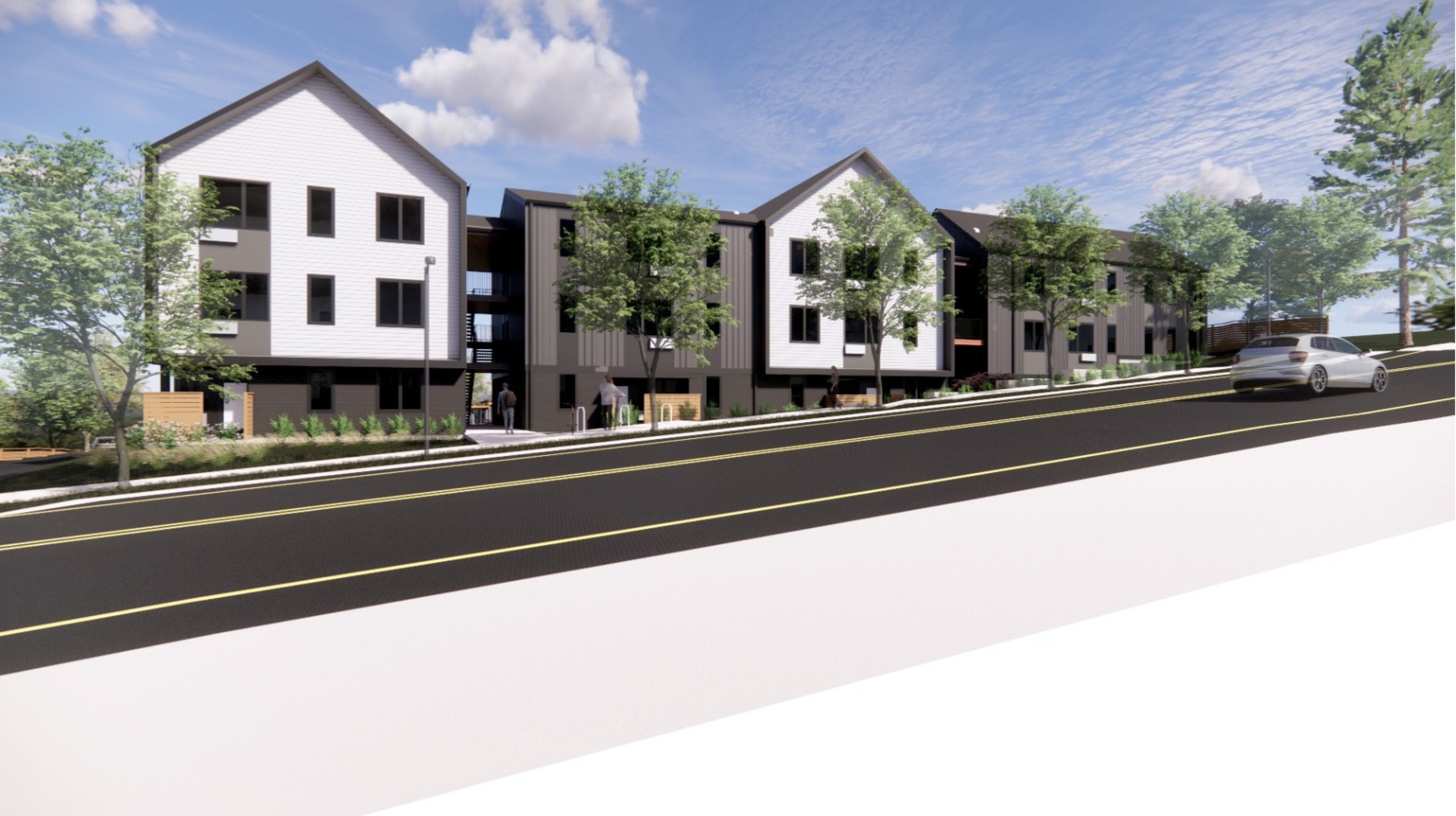 Bull Mountain is a multifamily affordable housing project consisting of 74 apartment units spread across three three-story garden-style buildings and a separate single-story leasing office on a 4.23-acre site. The site amenities include a community room and an on-site leasing office, covered bicycle parking, common outdoor areas, and 96 off-street parking spaces. The unit mix is 25 2-beds at 60% AMI, 34 1-beds at 60% AMI, and 15 1-beds at 30% AMI.